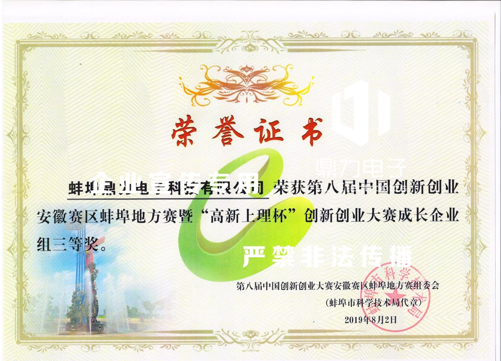 第八屆中國(guó)創(chuàng)新創(chuàng)業(yè)大賽安徽賽區(qū)蚌埠地方賽三等獎(jiǎng)